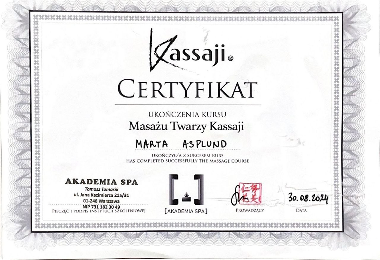 Japanese Head Spa Trainer | Specialist in Scalp Therapy, Trichology & Holistic RelaxationMarta Asplund is an internationally certified Head Spa specialist and educator, known for her refined sensory approach, deep understanding of scalp health, and holistic method focused on nervous system regulation and hair vitality.